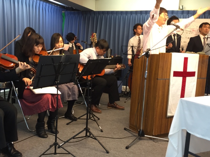 後半のペテロ窪田さんリーダーの牧師賛美。オーケストラスタイルです♫