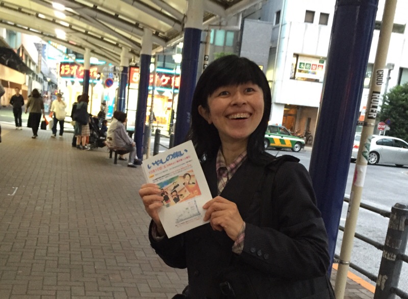 今日出演したみなさんも、いやしの集いの路上ライブでチラシをくばりました。