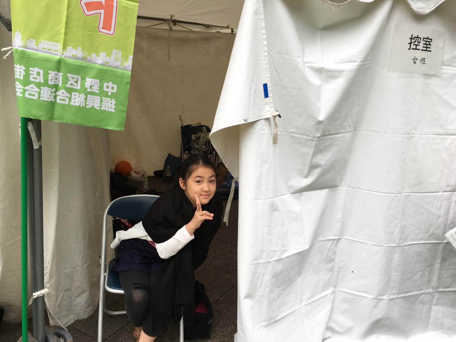 控え室のテントの入り口で荷物係してくれました(^^)