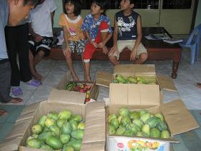 カンボジアの美味しい果物の中でも、1番好きなものはマンゴー! 3月~4月が旬ですが、今でも熟した甘いマンゴーが食べれます。 先月マンゴーをたくさん頂いて、子ども達と大喜び(写真左)。 普通は、皮を剥いて切って食べますが、子ども達は丸かじりも大好き! これはあまり見かけない食べ方(写真右)、バナナのように皮を剥いて食べる女の子がいました。