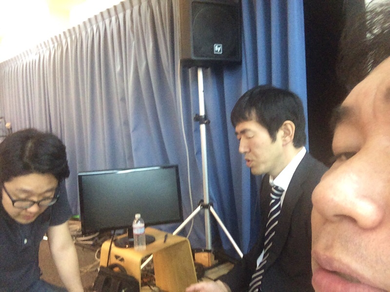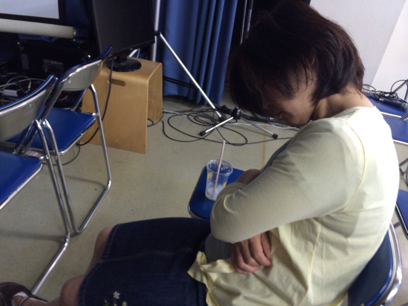 白馬キャンプ祈祷会、終了後、教会会堂に来てます! 今日、朝、インターネットラジオ(夫婦のどたばたラジオ)の収録をしましたが、それを藤田くんが編集してくださっているところを見学に来ました、 孤児院スタッフ真境名!