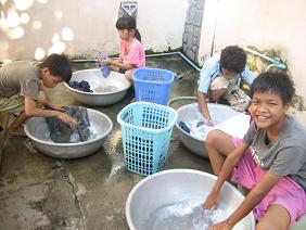 以前は、お兄ちゃんやお姉ちゃん達に洗濯を手伝ってもらっていた子ども達も、今では全員小学生。