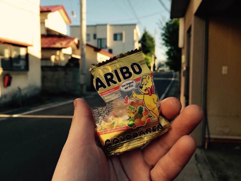 ゴールデンベアー! 教会に間違って早く着いたのでノエちゃんから貰ったグミを食べます。 弘前 K