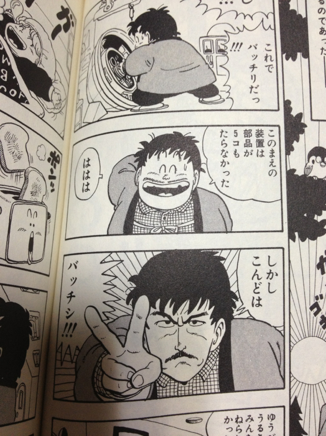 漫画アラレちゃんの則巻千兵衛さんと、前回こころごすぺるに出演された池田さん&プランナーの真境名牧師を並べてみました!
