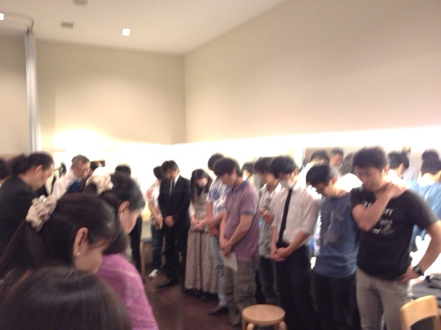 こころごすぺるの写真。 コンサート直前、全員集合し、秋元牧師が祈ってくださいました。