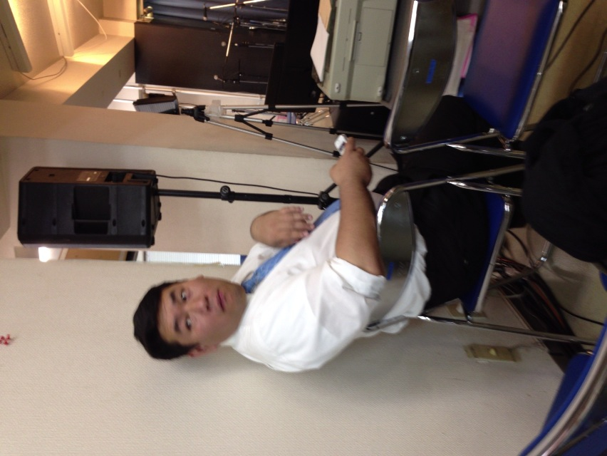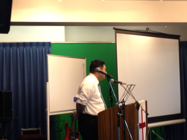 少し前の神学校での真境名牧師をパチリ。何かをガン見しておられます。