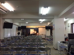 来週のプランナーである益川さんが会堂の片付けをしていました。来週も乞うご期待!!