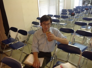 方や、窪田牧師!車で来られたそうで只今食事中!