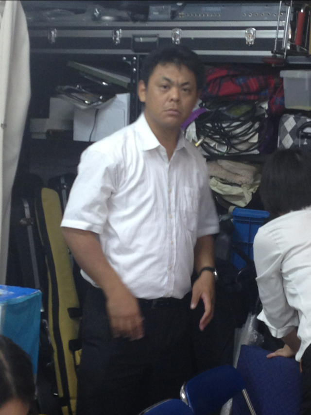 メッセージ中のプランナーの真境名牧師! いろいろと多忙ですよね。