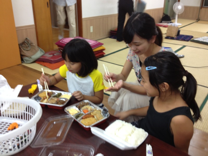 映像出しの確認をする中島くんと横で小籠包を食べながらくつろぐ、窪田牧師。 マスカワ