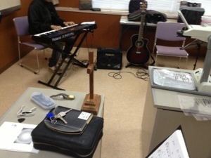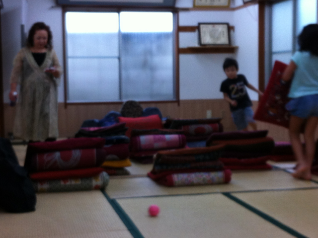 第一礼拝はCSの奉仕です。なんだか座布団がすごいことに…