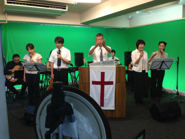 始めて、礼拝で13集の新曲が歌われました。素晴らしい賛美が続いています。