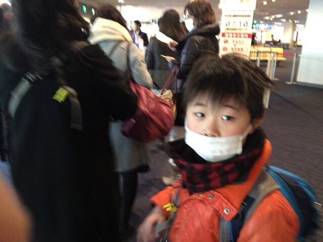 目の前にゆうとくん居ました〜!同じ飛行機(^^)Noe