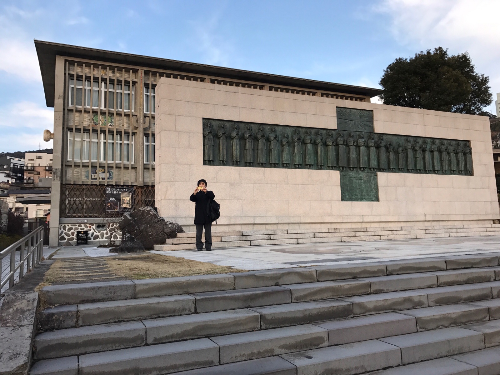 レリーフの後ろにキリシタンの資料館もあります。 柏 ハンナ