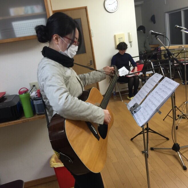 ギターのチューニング中のけいちゃん。風邪癒されますように。 弘前 のえ
