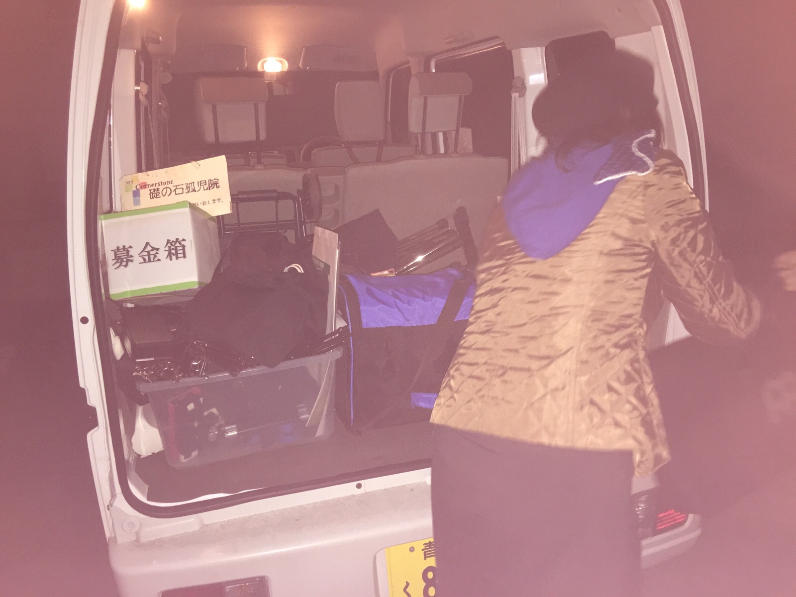 車にコンサートのための機材を積み込んでいます。 弘前 のえ
