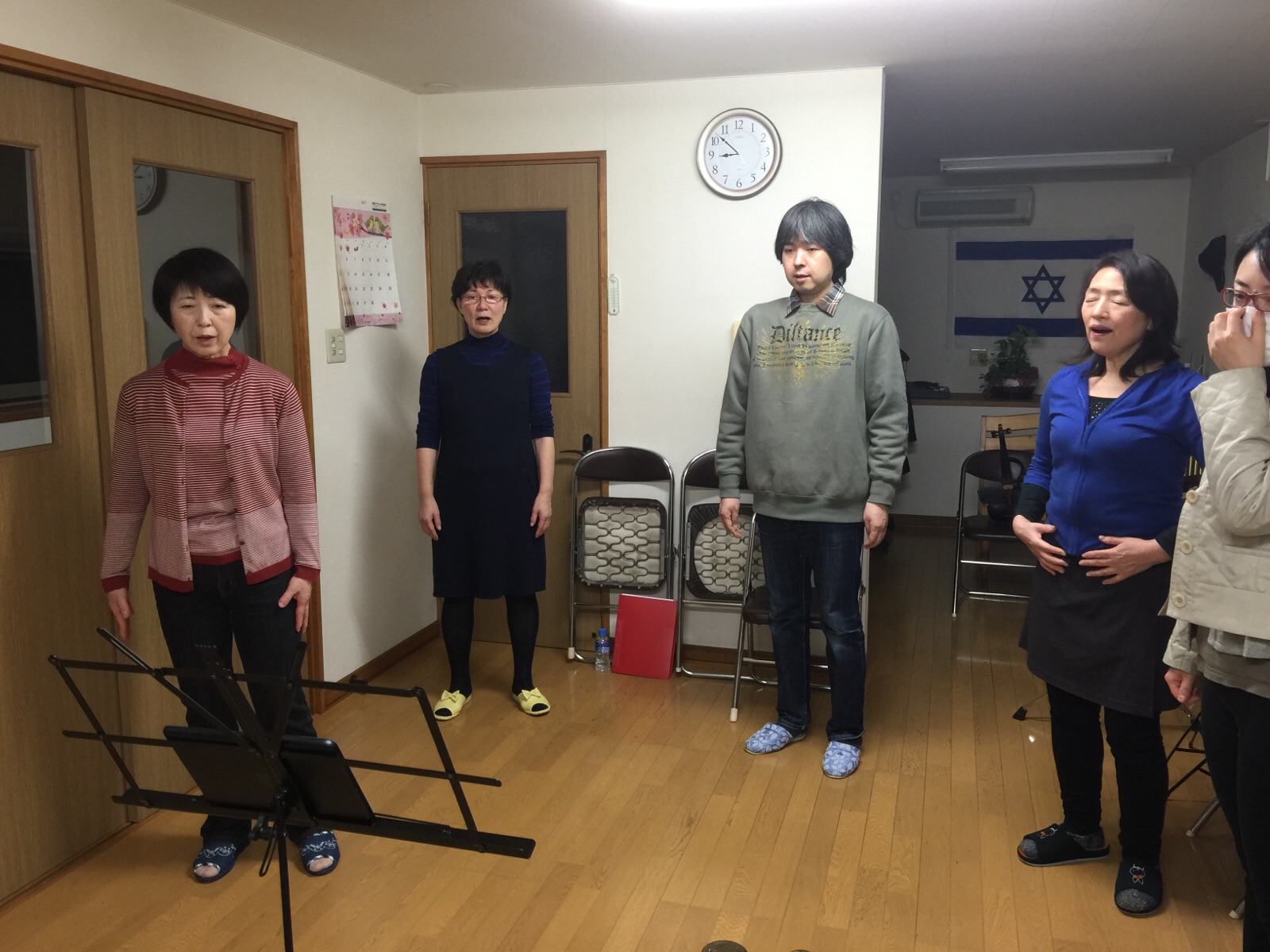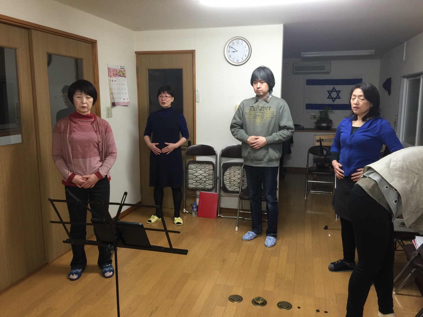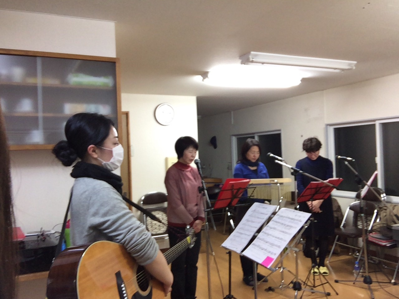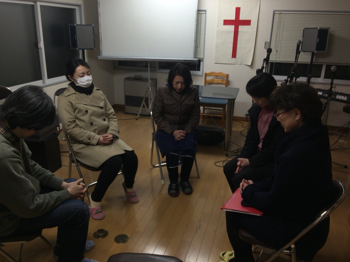日曜日のゴスペルコンサートに向けて、教会チームの練習がありました。まずは、お祈りから。 弘前 のえ