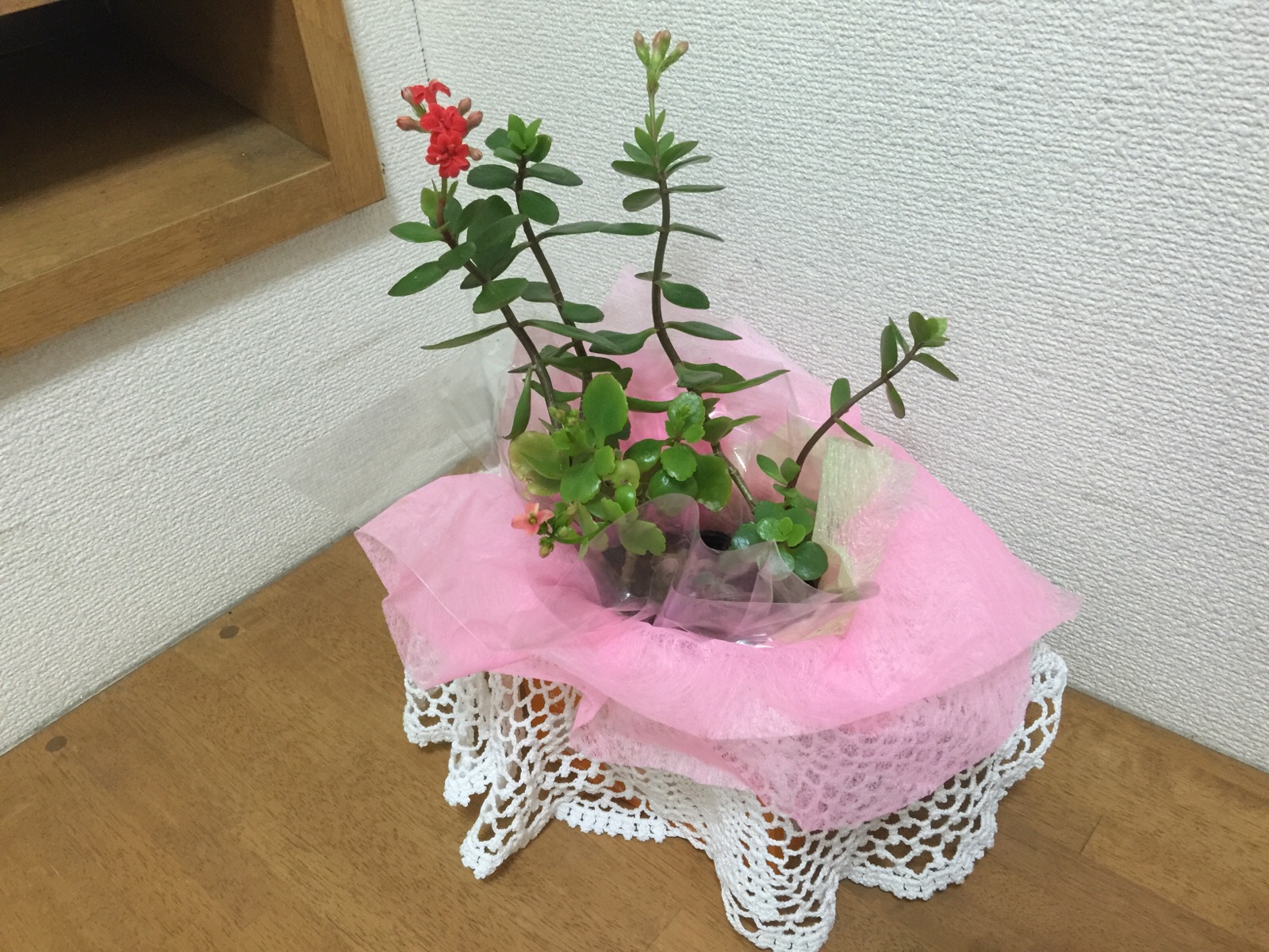 いみさんが持ってきて下さった、カランコエというお花がお出迎えしてくれます。 弘前 のえ