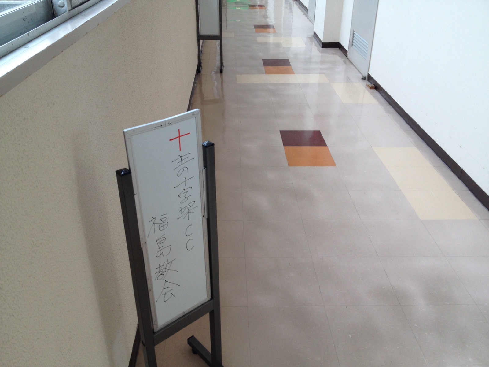 信夫山のトンネルを過ぎると今日の会場 市民会館です 山も桜が満開 ヨセフ