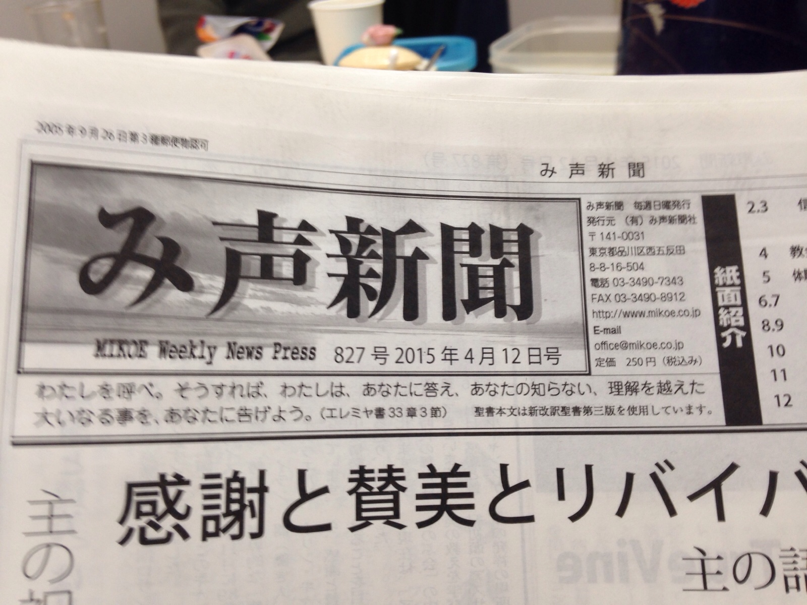 【み声新聞祈りのサポーター】今日の作業のために 828号のメールが届いています。3時までに終了できますように! ハンナ