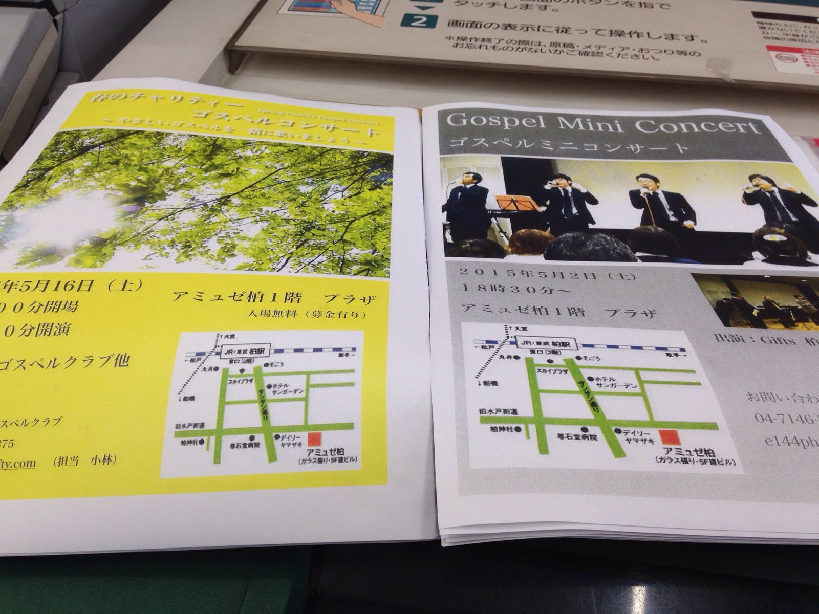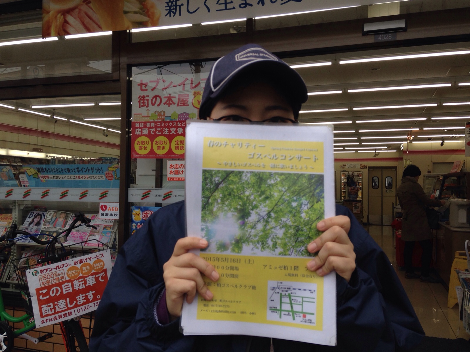 コンビニエンストアで、柏教会の春のコンサートチラシをコピーしました。 ハンナ