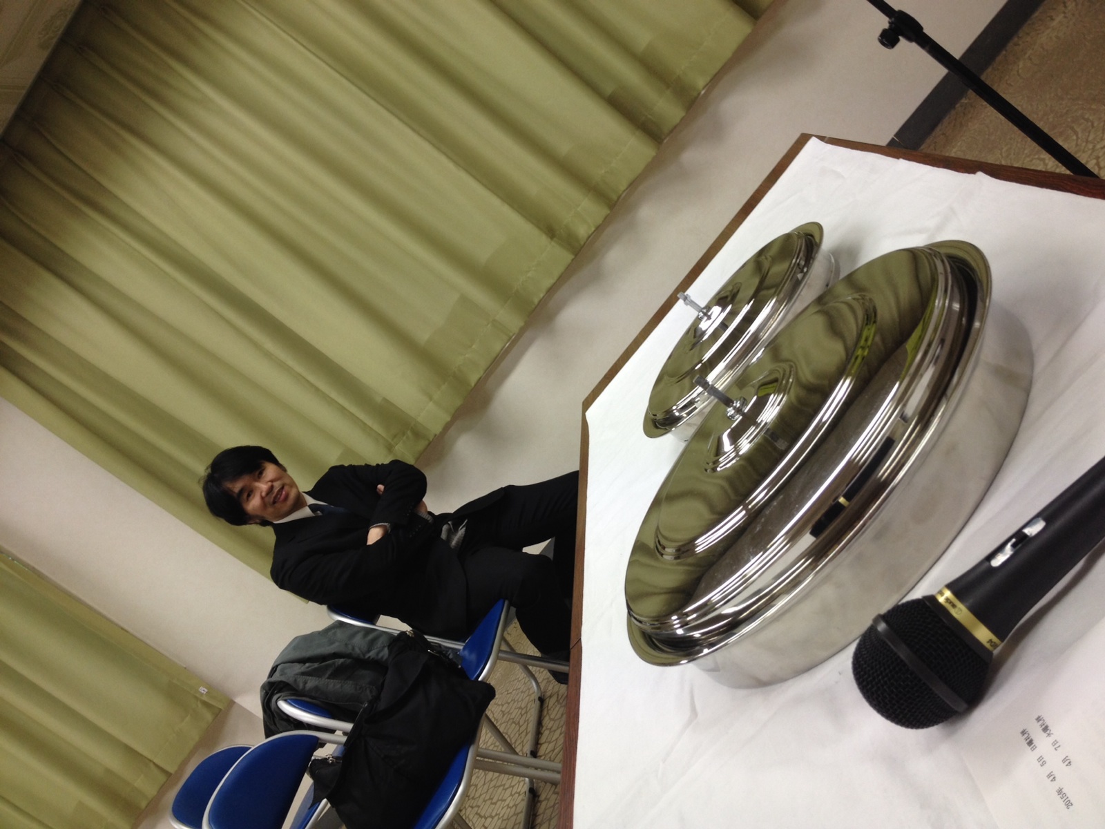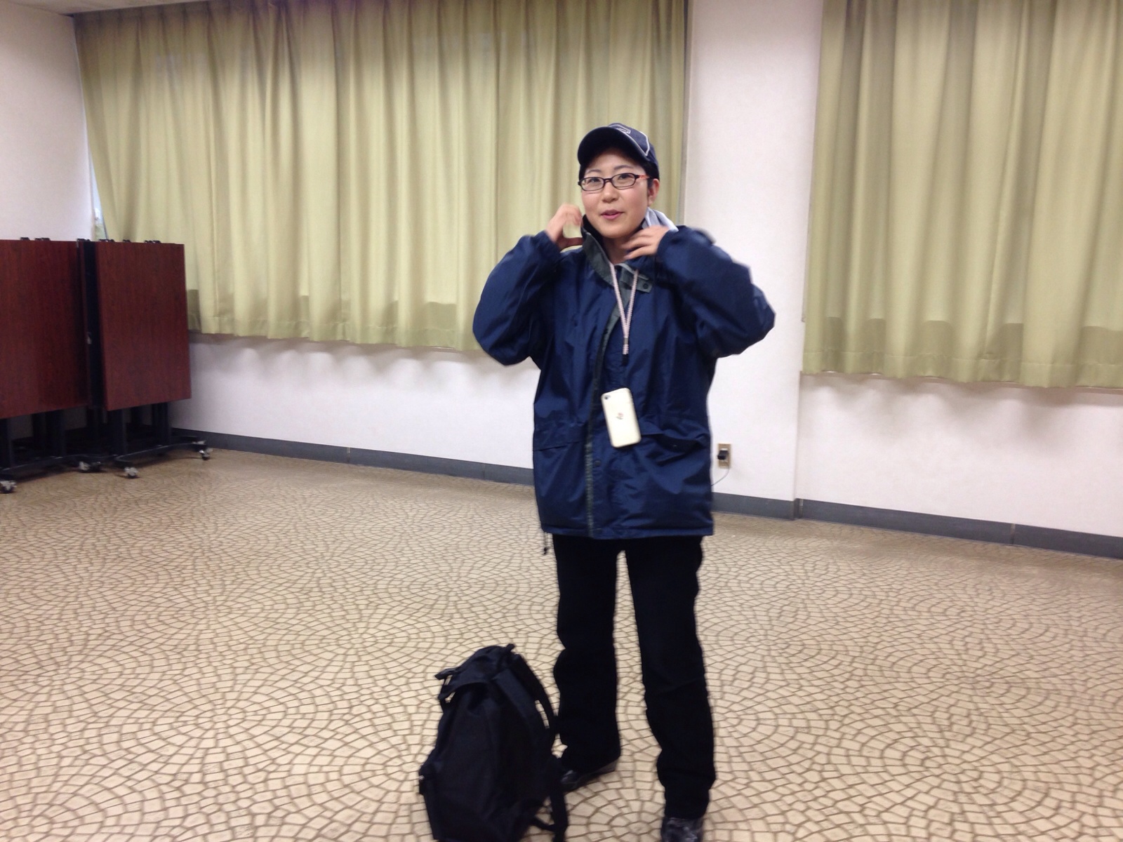 火曜礼拝の後片付け。椅子がスチール製でとても軽いのです。新品の椅子に変わりました。 ハンナ