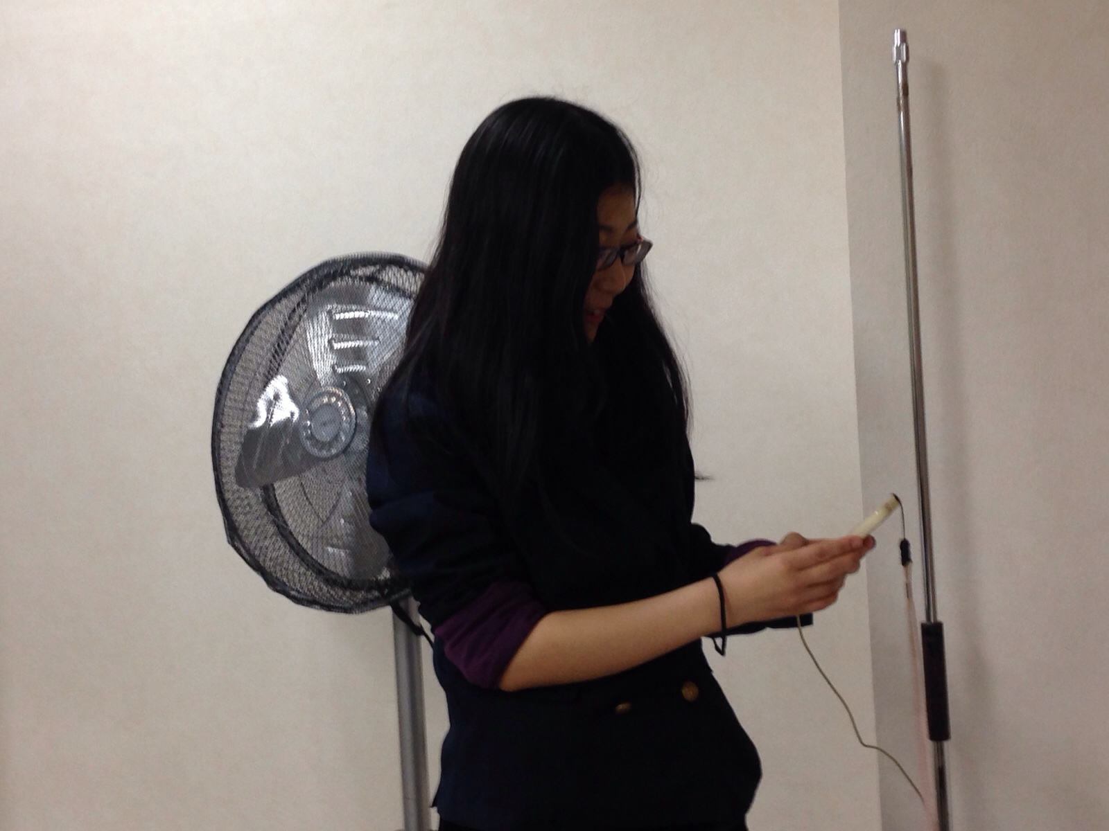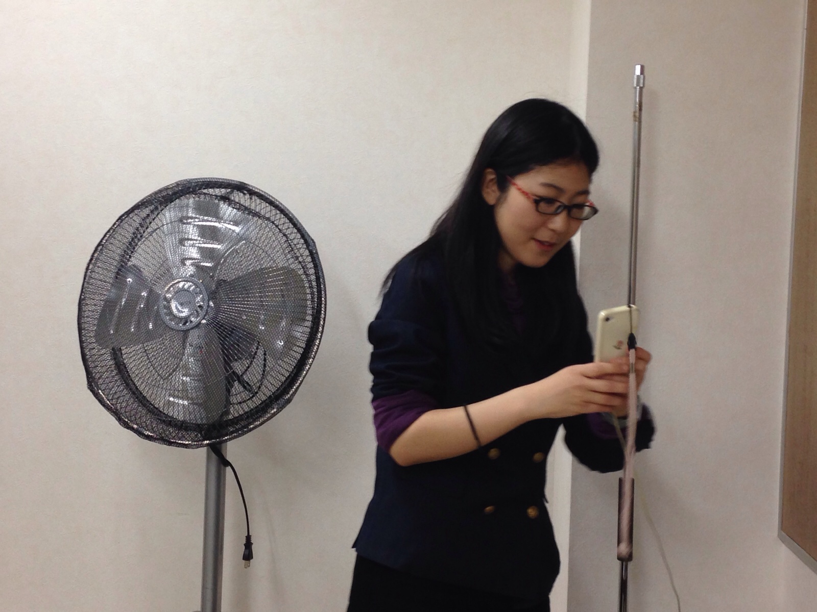 背中に大きな扇風機。このお部屋には、なぜかいつもあるのです。 ハンナ