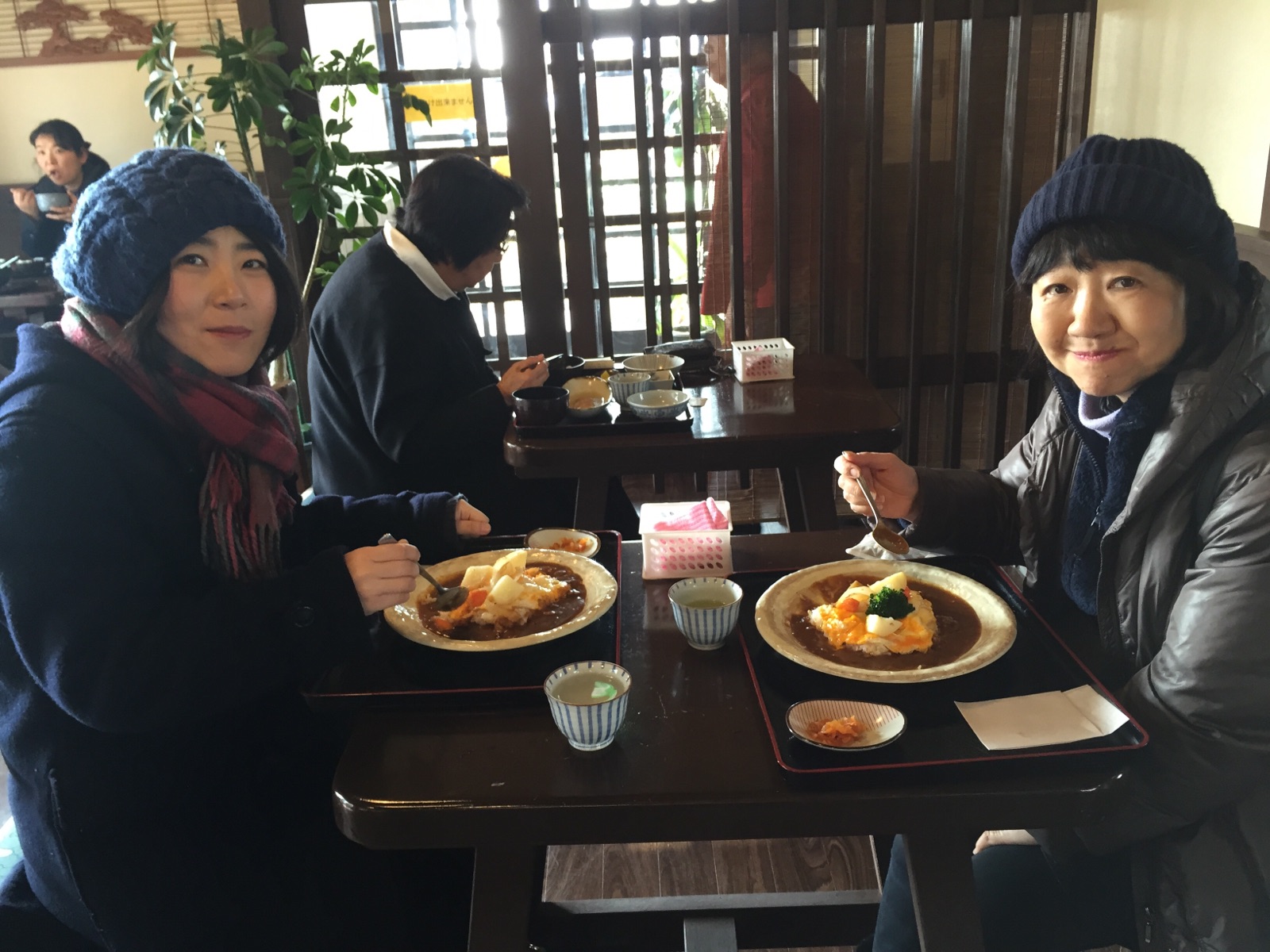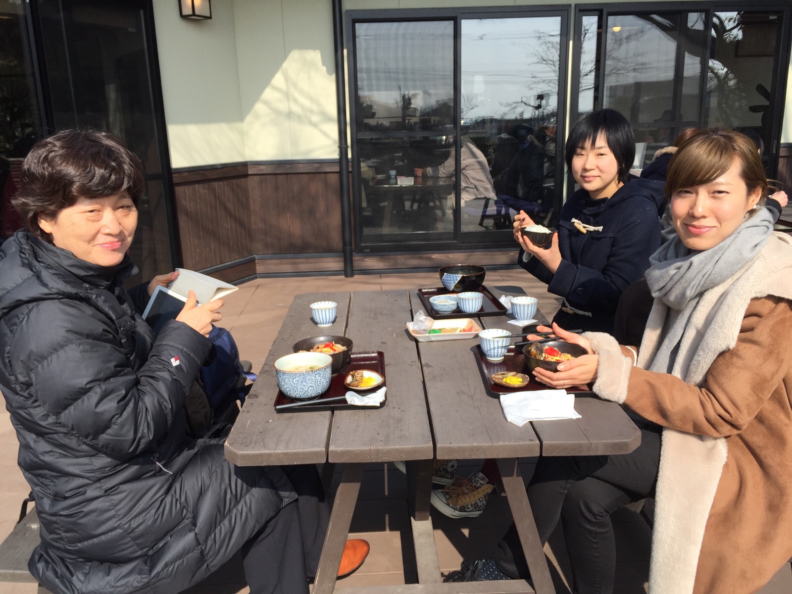 暖かいので外で召し上がる方々多く。室内も快適!エステル