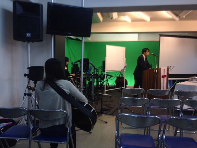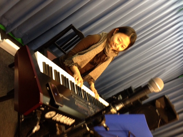 歌い終わりました(o^^o)三本松牧師がチェックしてくださっています(o^^o)ラベイユゆみ♪