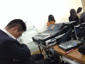賛美大会にはベースとギターを演奏するサムエルくん。寝ていません?