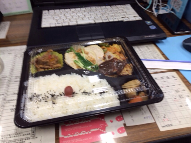 午後に備え支給された弁当を食べホット一息。しかしながら、この間に明日の予選会のことでいろいろメールで連絡が。^_^ 裏方テモテ