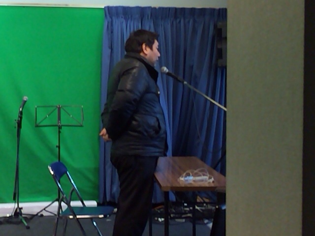 キブツの真境名牧師のこの横姿!スマートになりつつありますね! やせても高音は健在です!