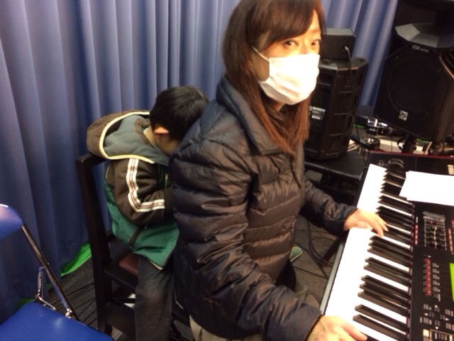 会堂ではウラノスが本番さながらの練習中です。ジョイさんがJOYを歌うそうです。