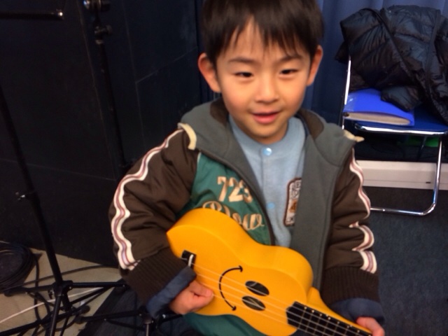 ヨッシーもウクレレで練習。 本人は本気のつもり。