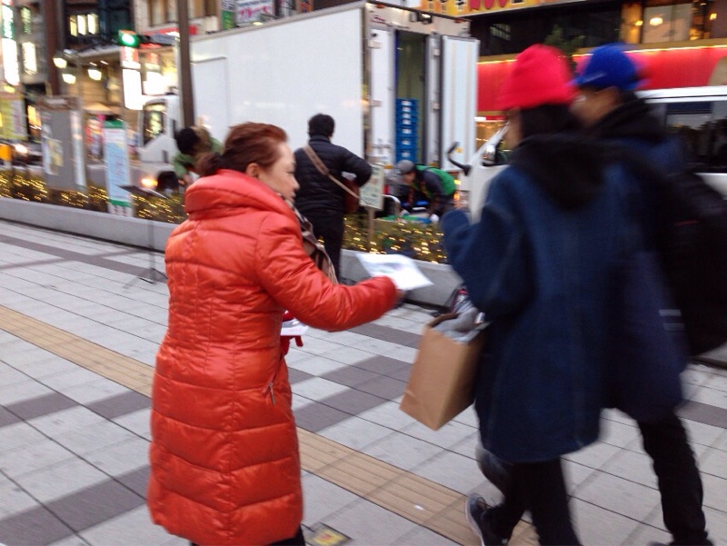 伝道部のスタッフでもあり、いやしの集いの時はチラシ配りもします。どんどん渡していきます! エルサレム