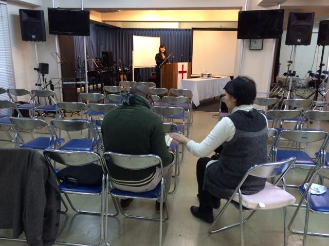 火曜礼拝で、ベルギーの方がいらっしゃいました。 大野さんに通訳を協力していただきました。 礼拝の様子です。