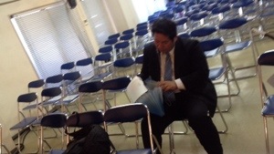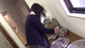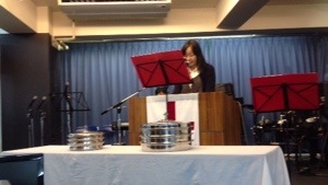 ゴスペルチーム3つ掛け持ちの清水さん!聖餐の準備中です。