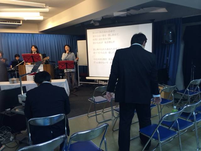 月曜第一礼拝がスタートしました! 広田牧師が賛美リーダーです。