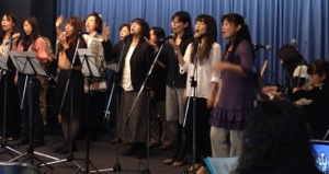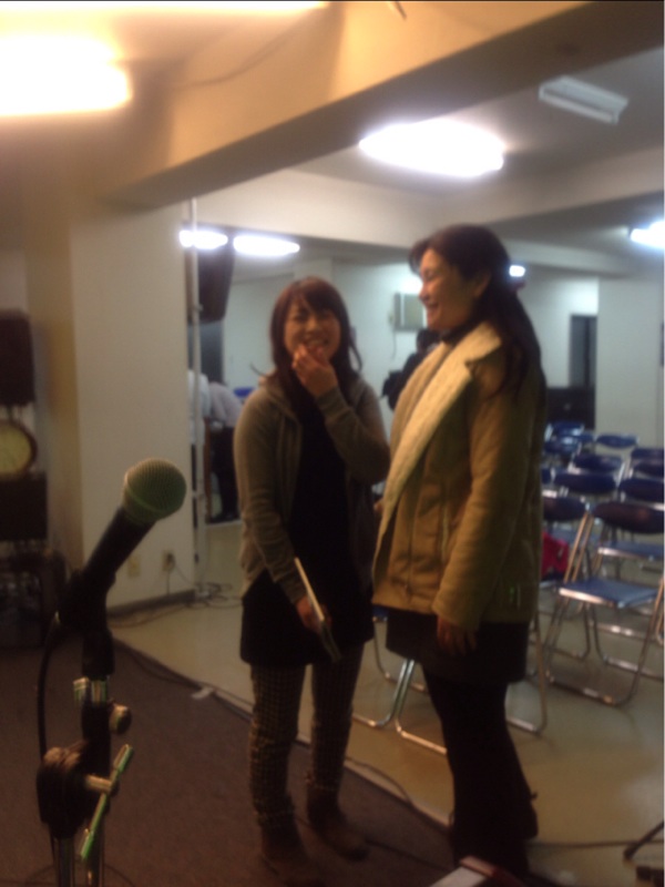 ゴスペルライブの後は、ラスポーザの練習です。ダブルけいこさん自転車で到着です。