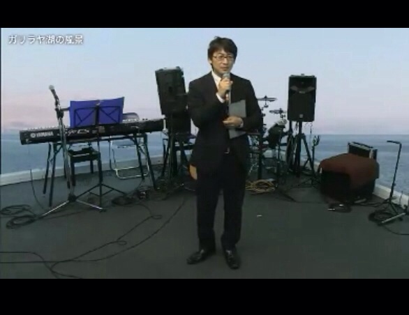 賛美で心満たされた後は、ヨセフ三本松牧師のメッセージ!
