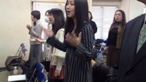 サラちゃん、イスラエルちゃんそして Truthの前田さんが並んで賛美しています。