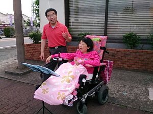 玉名駅前にて路上ライブしました。 バス待ちの方たちが、聞いておられました。 主を賛美します♪