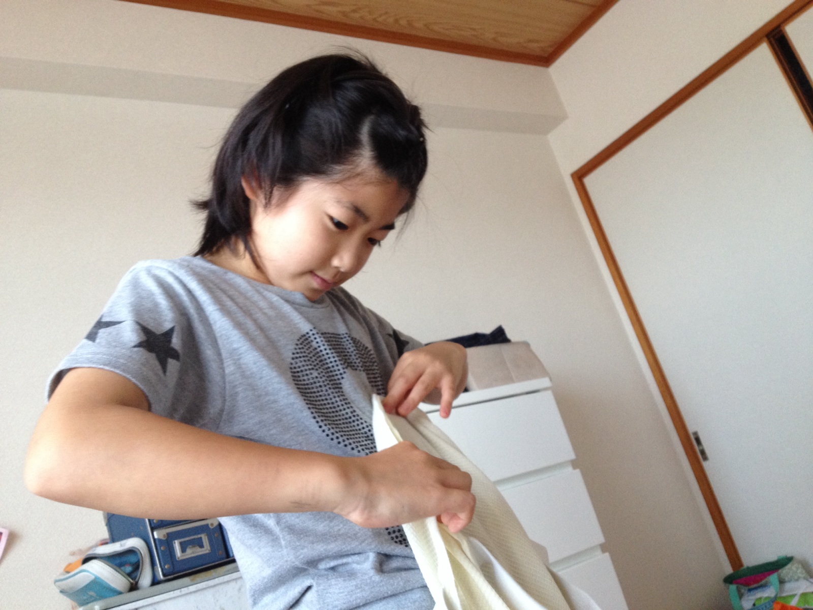 シーツたたみの練習していた娘、早くも休憩。。。 東フィラデルフィヤ シオン