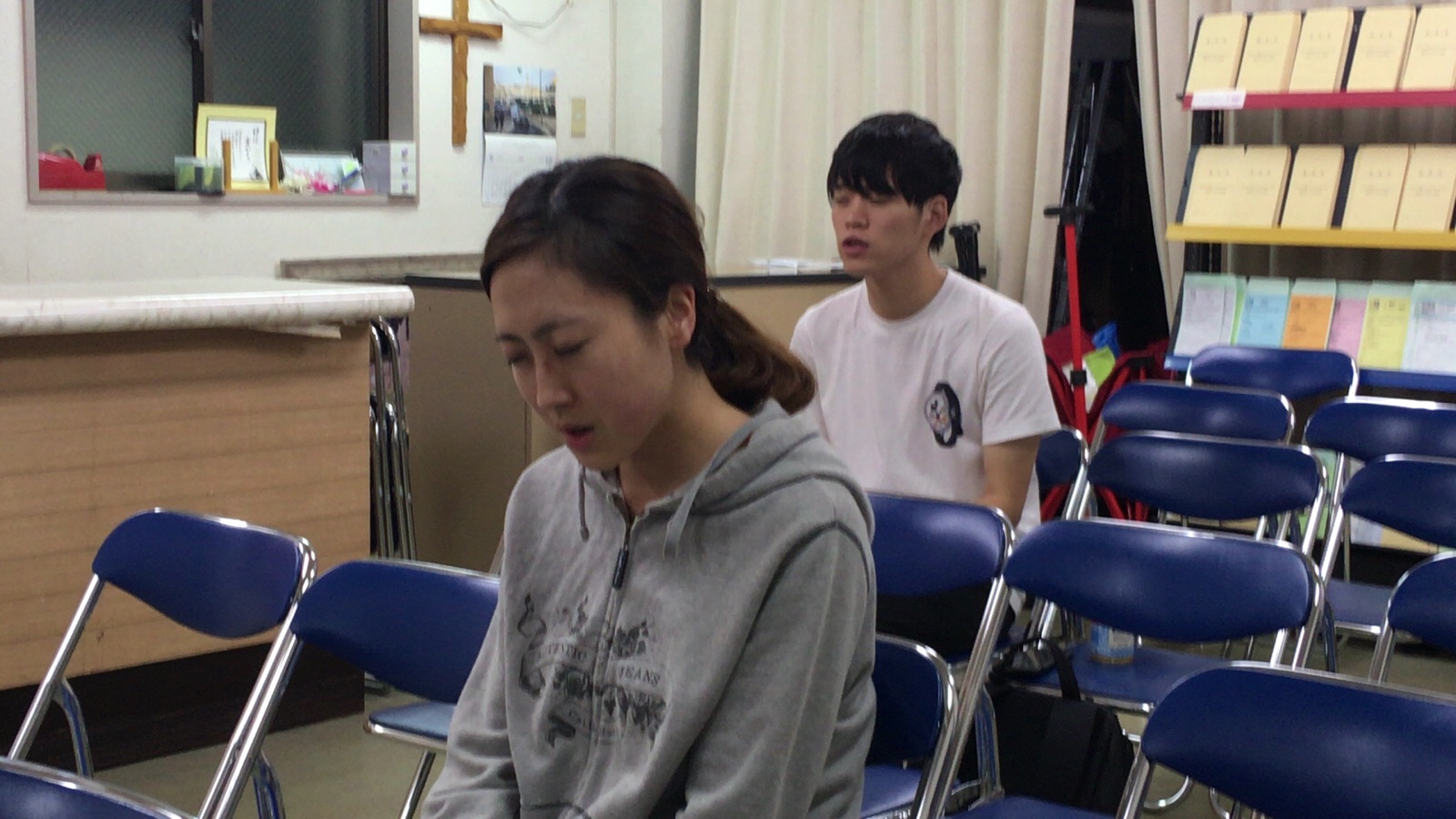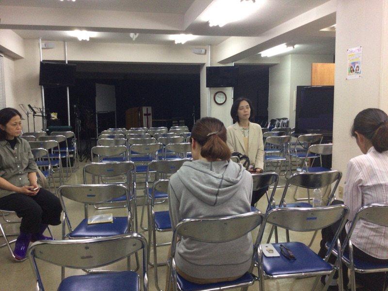 会堂では夜の祈祷会。