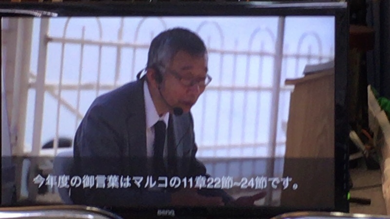 昨年のチームの映像を見ています。 画面は、ガリラヤ湖畔での新年度礼拝、アルベル山での礼拝です。