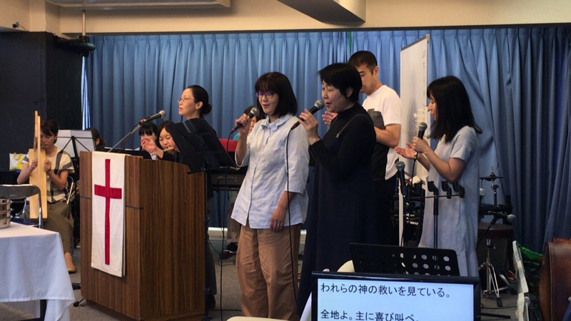 メッセージを取り次ぐ小代さんが導いて、賛美します。