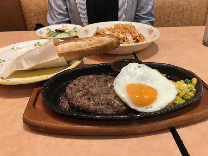 私はハンバーグ、奥様はスパゲティ! いただきます! PaulY