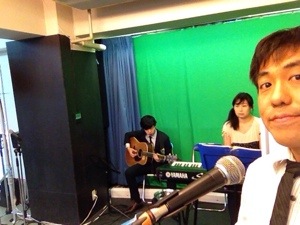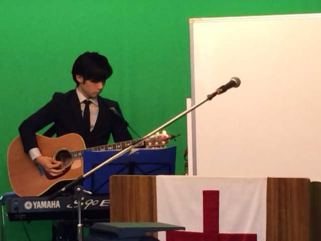 礼拝スタート! ギフツのダビデくん、賛美を導いています。