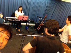 次はロングトーン!萱野牧師がキーボードで導いています。