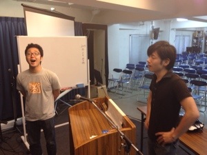 練習開始!まずはヨハネくん、ダビデくんが大きく口を開けて発声練習〜!